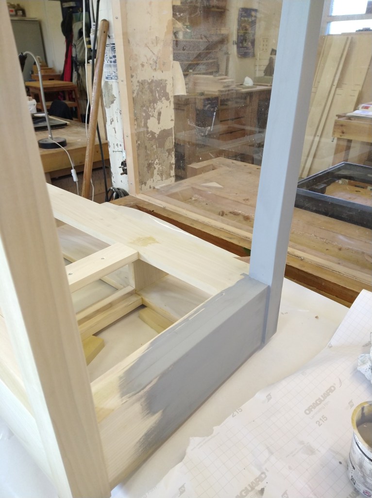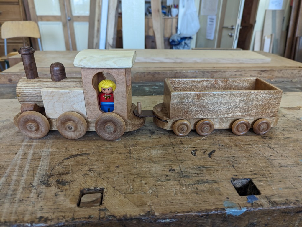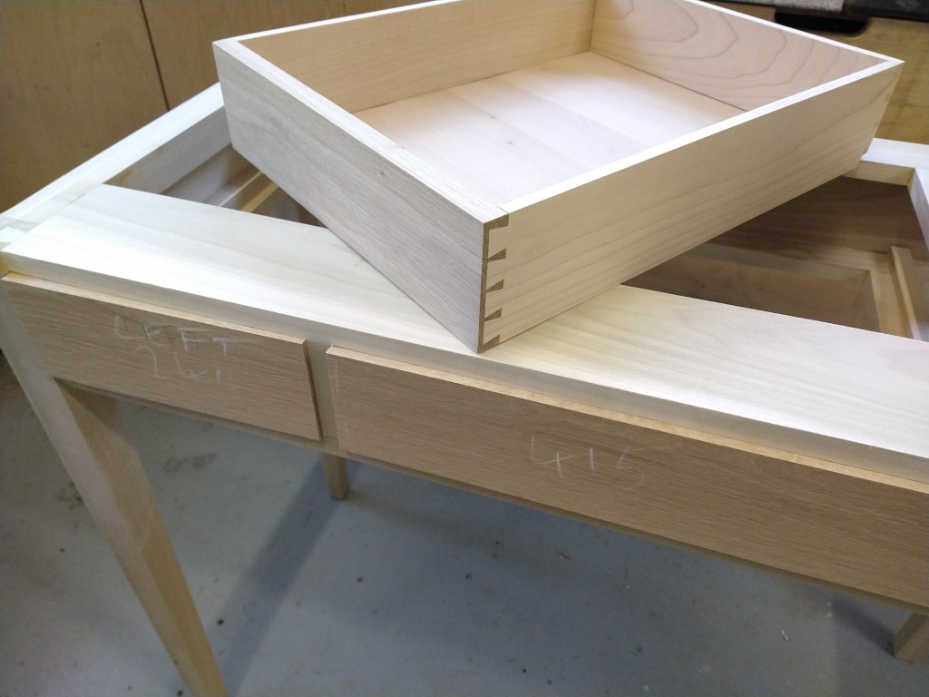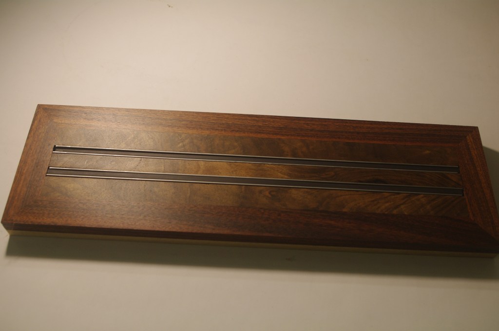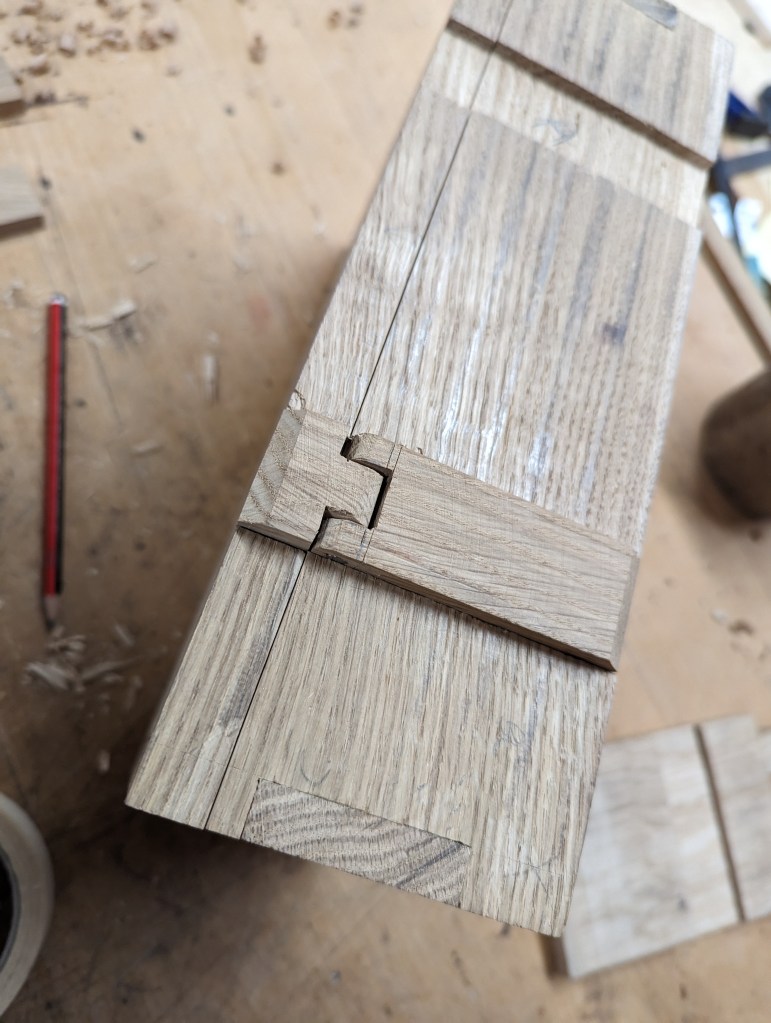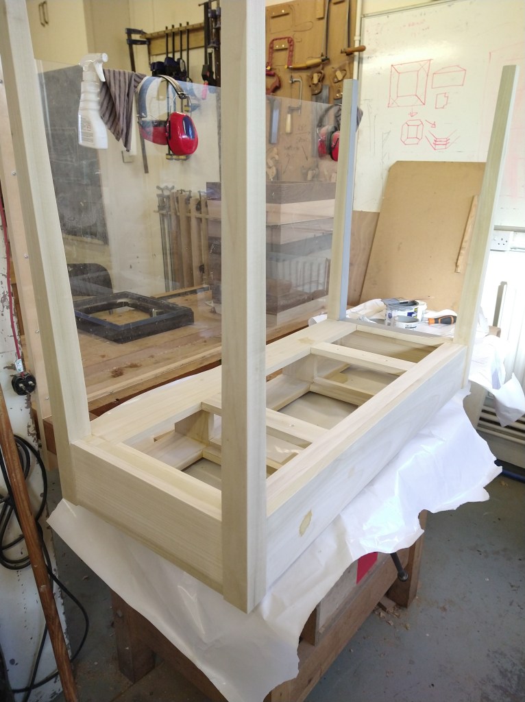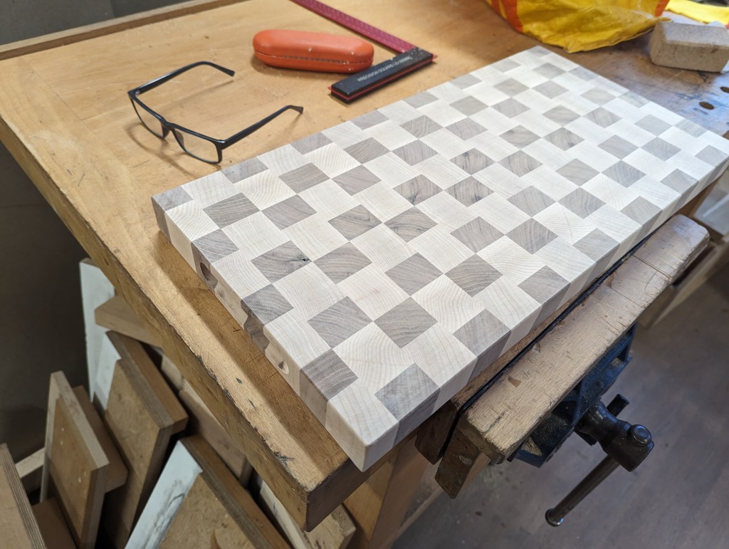 A rather strange project. We bought a magnetic knife rack – when unboxed it was incredibly plasticky and tacky – which should not have been a surprise since it cost £2.99 So the task was to break it apart and use the magnets and metal bars as a base from which to make something a little more pleasing to the eye. This was pulled together using a small piece of burr walnut as a support for the “bars” and an offcut of indian rosewood for the surround – all backed with maple. Slightly over the top maybe for a £2.99 knife rack – did we say how bored we are?This was a quick project to create a simple box to store seed packets. The wood came from an old shelf unit – we are not really sure what wood it is – it’s a very light wood with a fairly dense grain – it looks a lot more solid than it is. The top was laser engraved to personalise it. The brass hinges should ideally be complemented with a brass catch but we can’t get our hands on one at the moment so a rather rough looking chrome catch will have to do for now. The box is finished in 2 coats of boiled linseed oil and 2 coats of wax.This small cabinet was one of the prototypes for the “second project” project. After completing the introductory box building course, many people are keen to continue but don’t want to jump straight to a fairly large piece of furniture. We designed this simple one drawer, one door cabinet as a natural step up from the box building course. This version is in oak with bog oak handles – but it can also be made in ash with walnut handles. Also, not everyone has room for a new piece of furniture; the door can be fitted with a blackboard or a mirror to make it useful around the house.Very much work in progress here…. A “proptotype” desk for homeworking. One of the things we have found in our house is that we don’t have the space in the bedrooms for a full sized desk so we have been using all sorts of awkward surfaces to work on. So we decided to build a small desk with drawers that could maybe double as a dressing table or side table post-lockdown. This desk is only a little over 1m long and pretty narrow but easily big enough for a laptop and work papers. This is made primarily from Tulip wood /Poplar as it is pretty cheap with just the drawer fronts in Oak. The Poplar has a very variable colour pattern ranging from quite nice light colours to a dirty murky green – so all of the exposed Poplar will be painted. (lots of smart painted kitchens have Poplar framework) We are not sure what colour yet – it needs to match the finished oak – however the undercoat primer itself is currently a strong favourite. We are still planning the Wharfedale Workshop week long summer school project – and a desk like this may well feature. Watch this spaceWell, here is the finished prototype. We added some simple handles out of an oak off-cut – we think they do seem to match the general style of the desk. In the end we did decide that the Rustins Primer/Undercoat shade was rather nice and we had some Dulux Eggshell mixed in the identical colour by the excellent people at Mortons. The oak was then given three coats of OSMO satin wax oil. . So – the final conclusion; in general we are quite happy but it does feel a little larger than the dimensions (1050mm x 480mm) suggested in planning. It was intended to be a “work at home” desk that could then double up as a narrow hall table or dressing table, especially in a smaller home. We are now planning to re-create this, a little smaller, and probably with just two drawers; this time we will make it completely out of Elm which we’ve just bought from Duffields in Ripon. (The only drawback of making a life-size prototype is that we’we’re now left with this on our hands…..)A very quick project for a friend – a simple hi fi stand made out of reclaimed mango wood with 18mm plywood shelf inserts. Pretty solid but not really for the audiophile …. if you are, you should look at https://www.solid-sounds.co.uk This is run by a former student of Chris Tribe who makes amazing bespoke high end hi fi accessories. Take a look at the Linn turntable plinths which are built by Chris himself in the Wharfedale Workshop out of some incredible tropical and European hardwoods An extremely magnificent bread box made from walnut with tambour doors. Made on the Wednesday afternoon project class by a highly skilled woodworker, name of Phil.