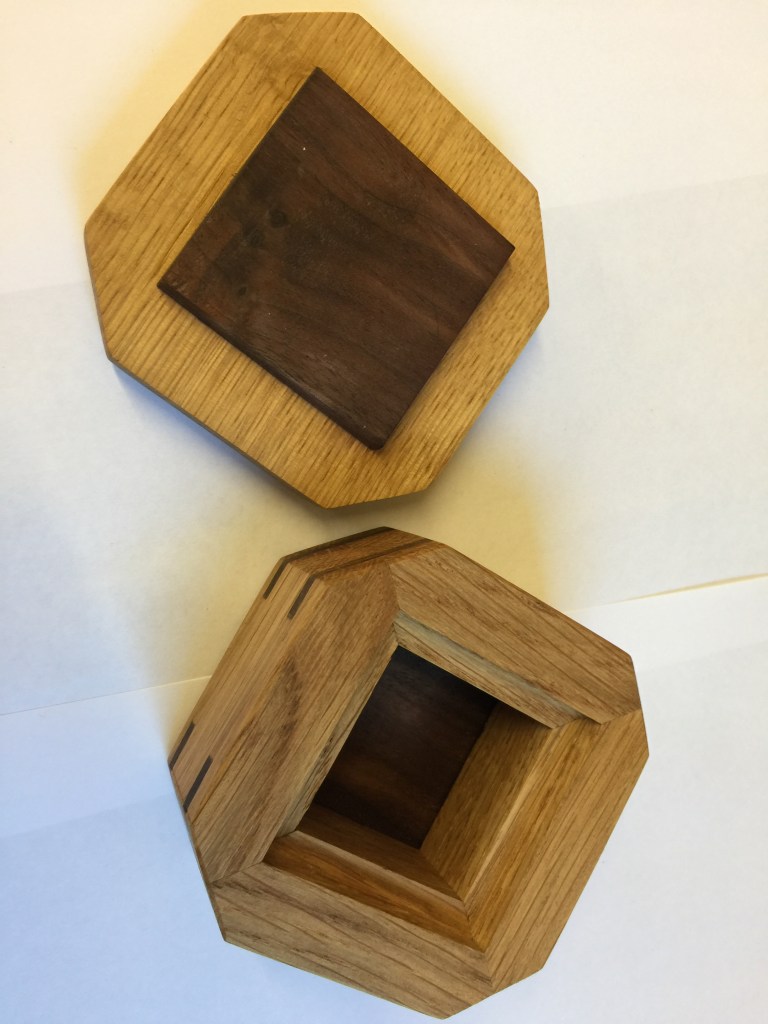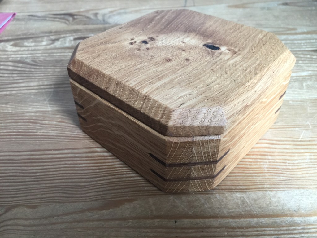 This small keepsake box out of oak with walnut splines in the miters has been a nice way to use up some offcuts. Pretty easy to make as well.
